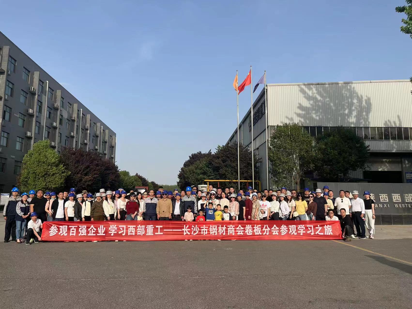 2023年4月15日下午,长沙市钢材商会卷板分会一行118人,在AK在线官网总经办总经理助理岳东风的带领下莅临陕西西部重工有限公司进行参观。我公司对其来访表示热烈的欢迎,由副总经理丁嘉奕、杨朋涛、财务部部长王红、综合部部长兼供管部部长谭义清、安环部副部长陈广利等进行了热情的接待。
