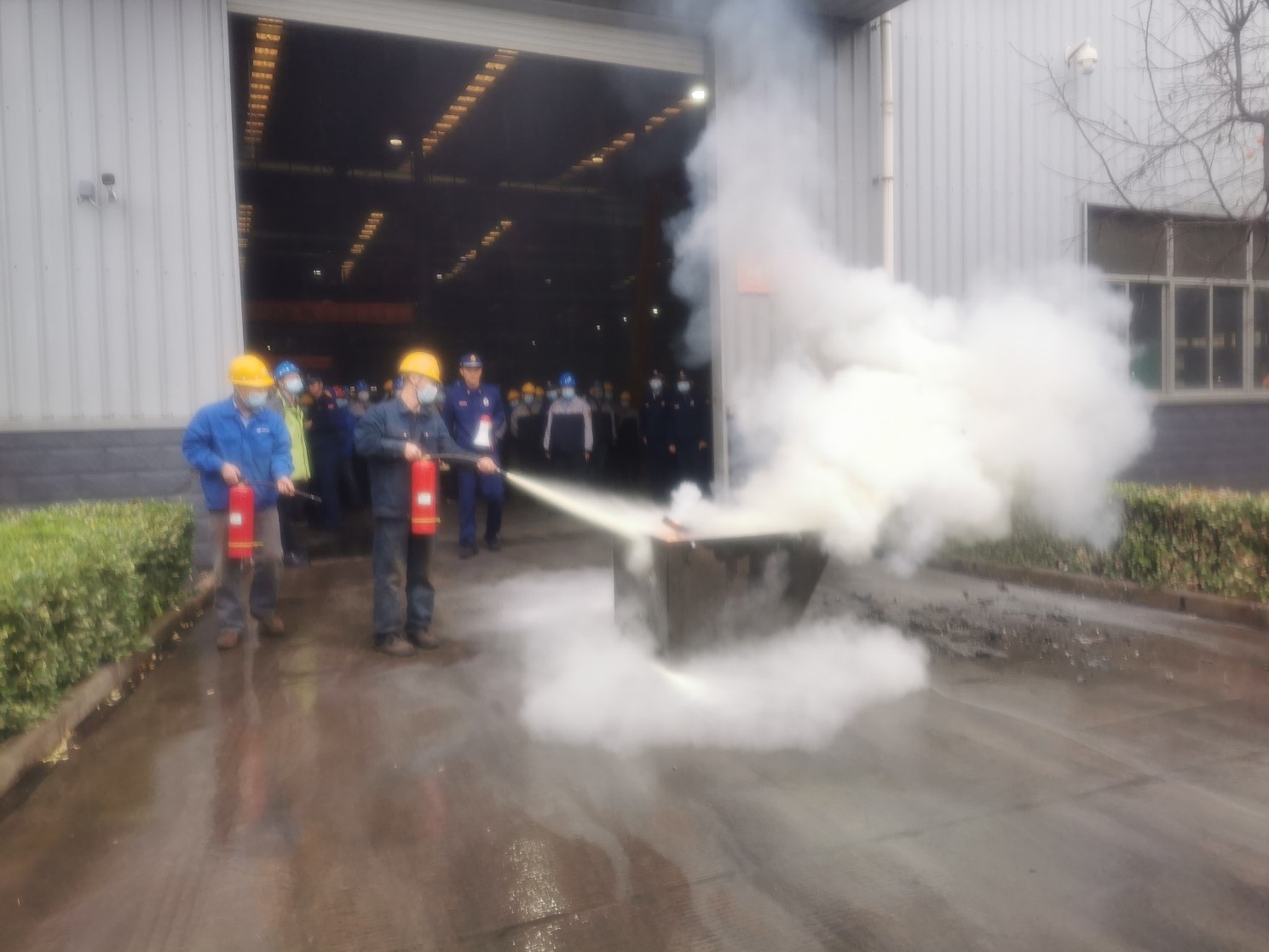 演练开始,先由消防大队人员对参与人员演示了灭火器的正确使用方法、步骤和灭火姿势等,然后安排各车间员工现场实操灭火。为及时掌握和体验真火的灭火方法,各车间员工都争先到现场拿起灭火器按使用方法和灭火步骤进行实操灭火,参加演练的员工严肃认真,服从指挥,现场气氛十分热烈。整个灭火实操按预练方案有序进行,达到了预期效果。